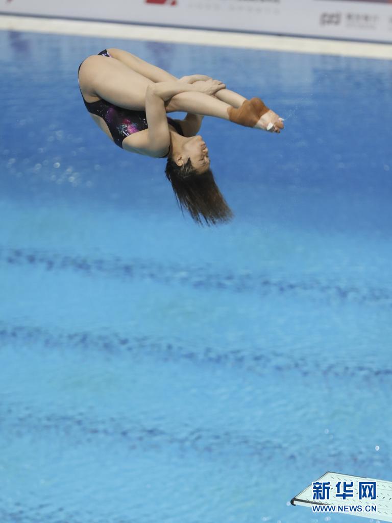 重慶隊選手施廷懋在上海舉行的2021年全國跳水冠軍賽暨東京奧運會選拔賽女子3米跳板決賽中(2021年5月15日攝)。 新華社記者方喆攝