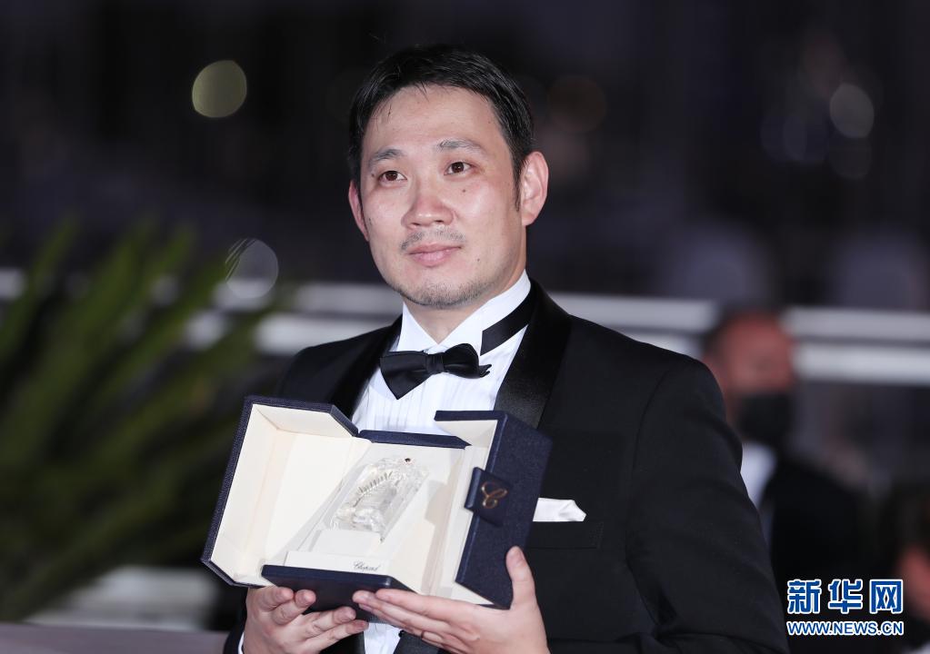 7月17日,在法國戛納,日本導演濱口龍介出席拍照式,其作品《駕駛我的車》獲最佳編劇獎。 第74屆戛納國際電影節17日閉幕。 新華社記者 高靜 攝