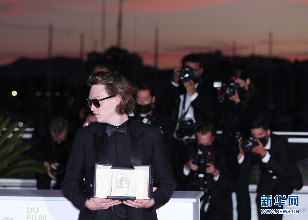 7月17日,在法國戛納,美國演員凱萊布·蘭德里·瓊斯出席拍照式,他憑借影片《內特拉姆》獲得最佳男演員獎。 第74屆戛納國際電影節17日閉幕。 新華社記者 高靜 攝