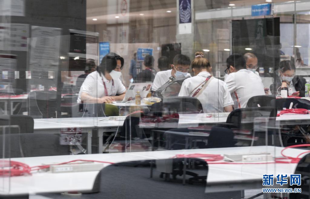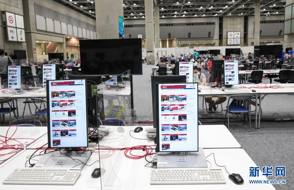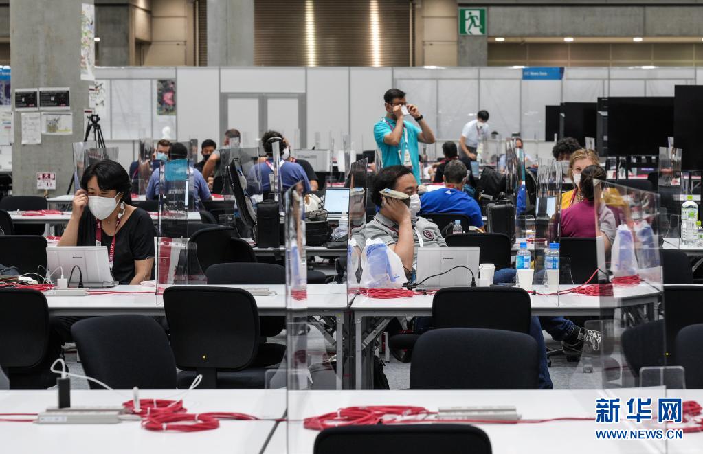 7月18日,記者們在主新聞中心媒體工作間工作。 東京奧運會主新聞中心(MPC)位于東京有明國際展覽中心內。MPC是奧運會期間記者們工作的大本營,是奧運會的信息中樞。 新華社記者 楊磊 攝