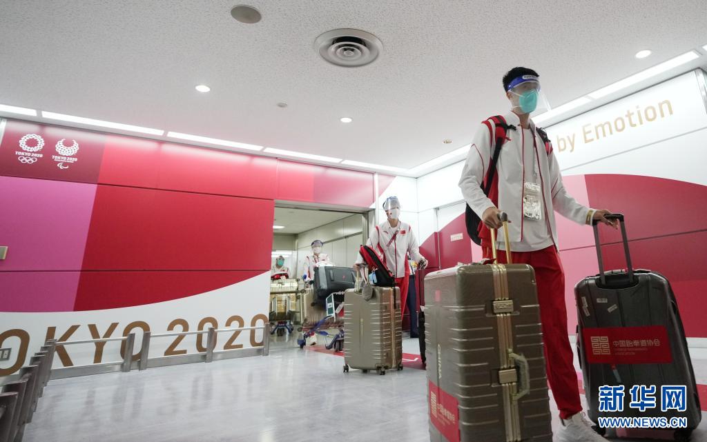 當日,參加東京奧運會的中國體育代表團部分成員抵達東京。