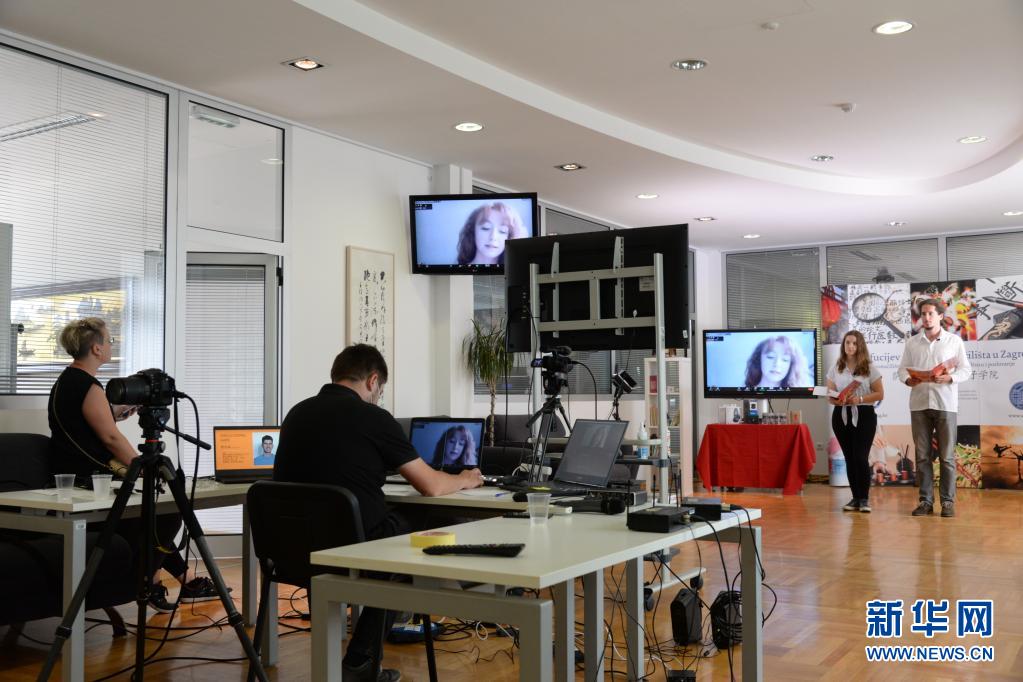 7月17日,在克羅地亞首都薩格勒布,參加“漢語橋”中文比賽的選手通過視頻連線參賽。 第20屆“漢語橋”世界大學生中文比賽和第14屆“漢語橋”世界中學生中文比賽克羅地亞賽區比賽17日在薩格勒布通過在線視頻方式舉行。 新華社記者 高磊 攝 |