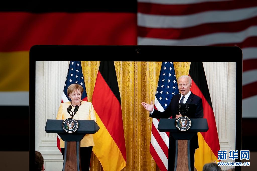 7月15日拍攝的直播畫(huà)面顯示,美國(guó)總統(tǒng)拜登(右)與到訪(fǎng)的德國(guó)總理默克爾在美國(guó)華盛頓白宮舉行聯(lián)合記者會(huì)。 美國(guó)總統(tǒng)拜登15日與到訪(fǎng)的德國(guó)總理默克爾舉行會(huì)晤,雙方就兩國(guó)關(guān)系以及地區(qū)和全球性問(wèn)題展開(kāi)討論。新華社記者 劉杰 攝