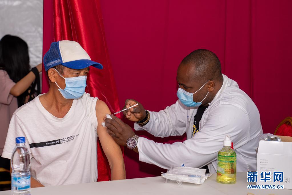 7月19日,中國公民在科特迪瓦阿比讓的“春苗行動”接種點接種新冠疫苗。新華社記者 鄭揚子 攝