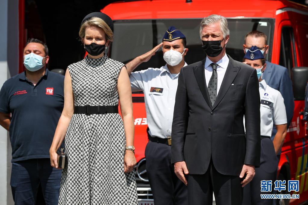 7月20日,比利時(shí)國(guó)王菲利普(前右)與王后瑪?shù)贍柕?前左)在南部城市韋爾維耶出席悼念儀式。 當(dāng)日,比利時(shí)舉行為期一天的全國(guó)哀悼活動(dòng),向嚴(yán)重洪水災(zāi)害遇難者致哀。 新華社記者 張鋮 攝