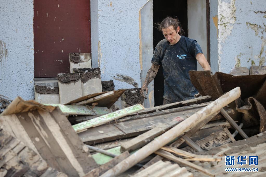 7月20日,一名男子在比利時受災嚴重的佩平斯特清理垃圾。 比利時危機中心20日證實,上周的暴雨及其引發的特大洪災已造成31人死亡、70多人失蹤,全國100多個市鎮受到影響。目前,比利時全國范圍內的降雨已停止,洪水也已基本退去,災后重建工作正在有序展開。 新華社記者 張鋮 攝