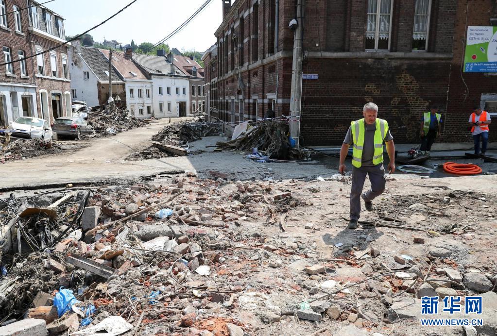 7月20日,一名工作人員在比利時受災嚴重的佩平斯特走過受損的街道。 比利時危機中心20日證實,上周的暴雨及其引發的特大洪災已造成31人死亡、70多人失蹤,全國100多個市鎮受到影響。目前,比利時全國范圍內的降雨已停止,洪水也已基本退去,災后重建工作正在有序展開。 新華社記者 張鋮 攝