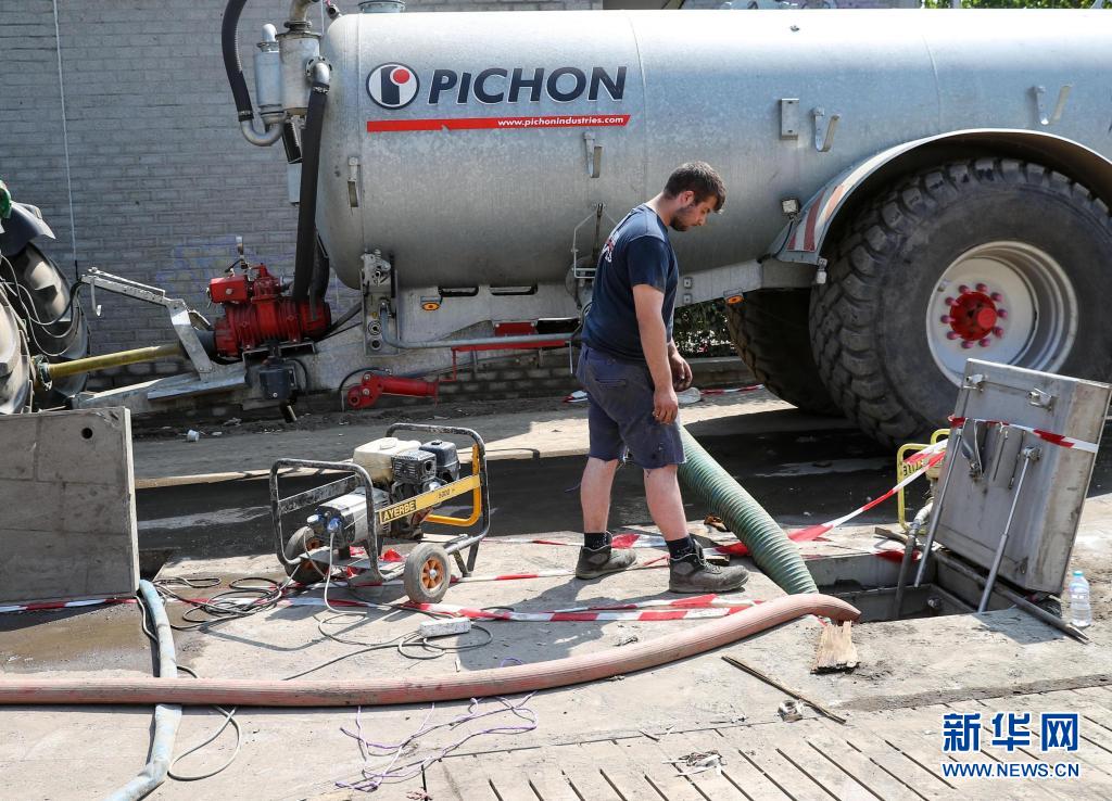 7月20日,一名工作人員在比利時受災嚴重的佩平斯特進行排水作業。