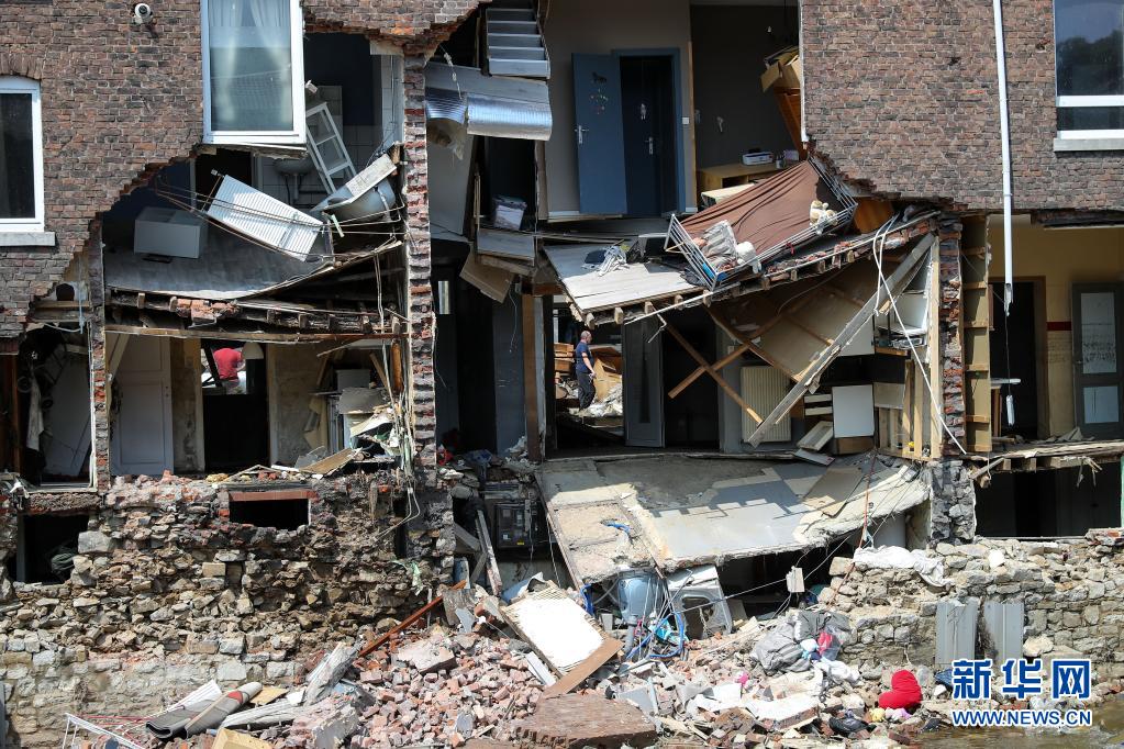 7月20日,居民在比利時受災嚴重的佩平斯特查看受損的房屋。