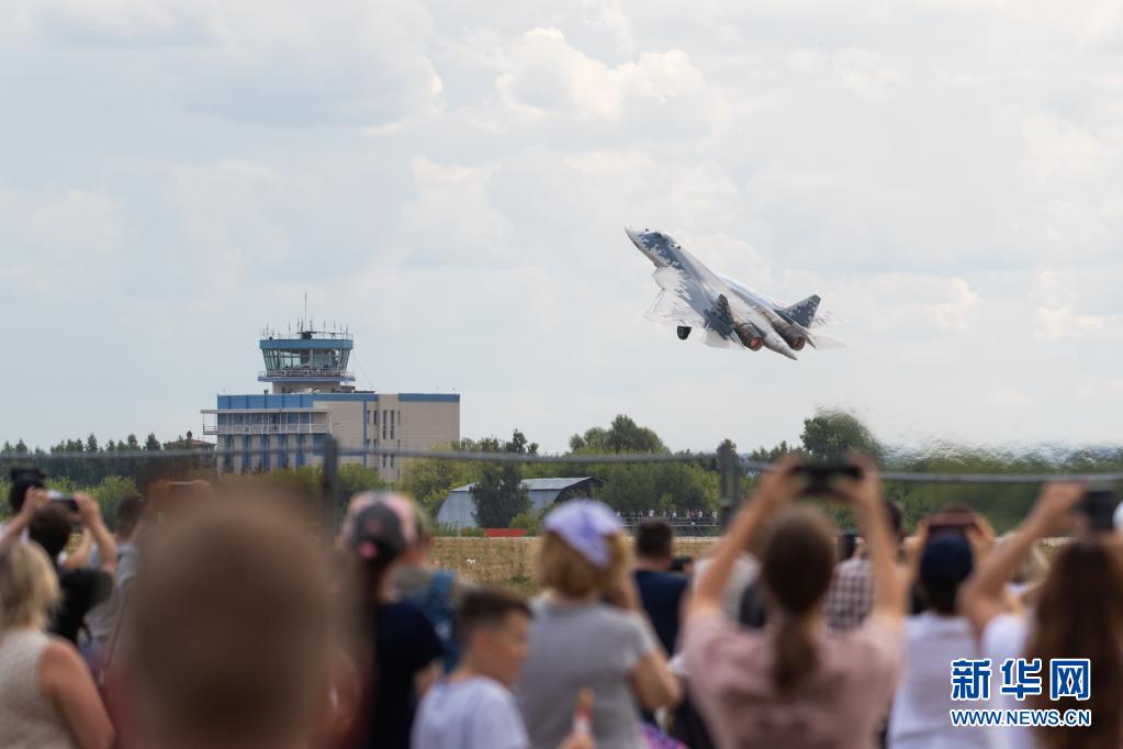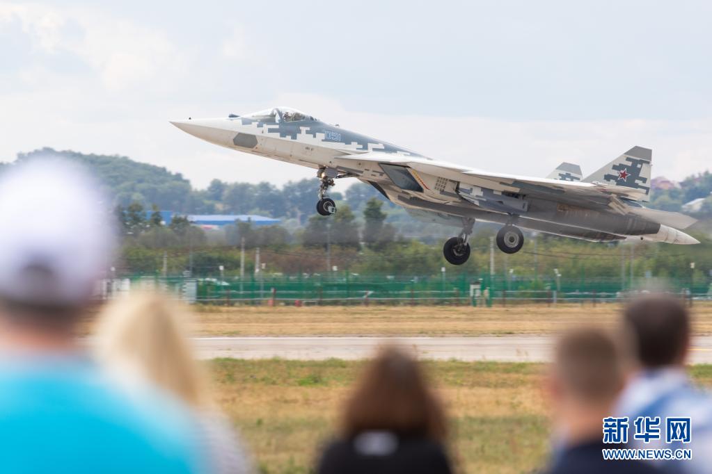 7月25日,在俄羅斯首都莫斯科附近的茹科夫斯基市,蘇-57戰(zhàn)斗機(jī)起飛進(jìn)行表演。 第15屆莫斯科國(guó)際航空航天展覽會(huì)于7月20日至25日在俄羅斯首都莫斯科附近的茹科夫斯基市舉行。 新華社記者 白雪騏 攝
