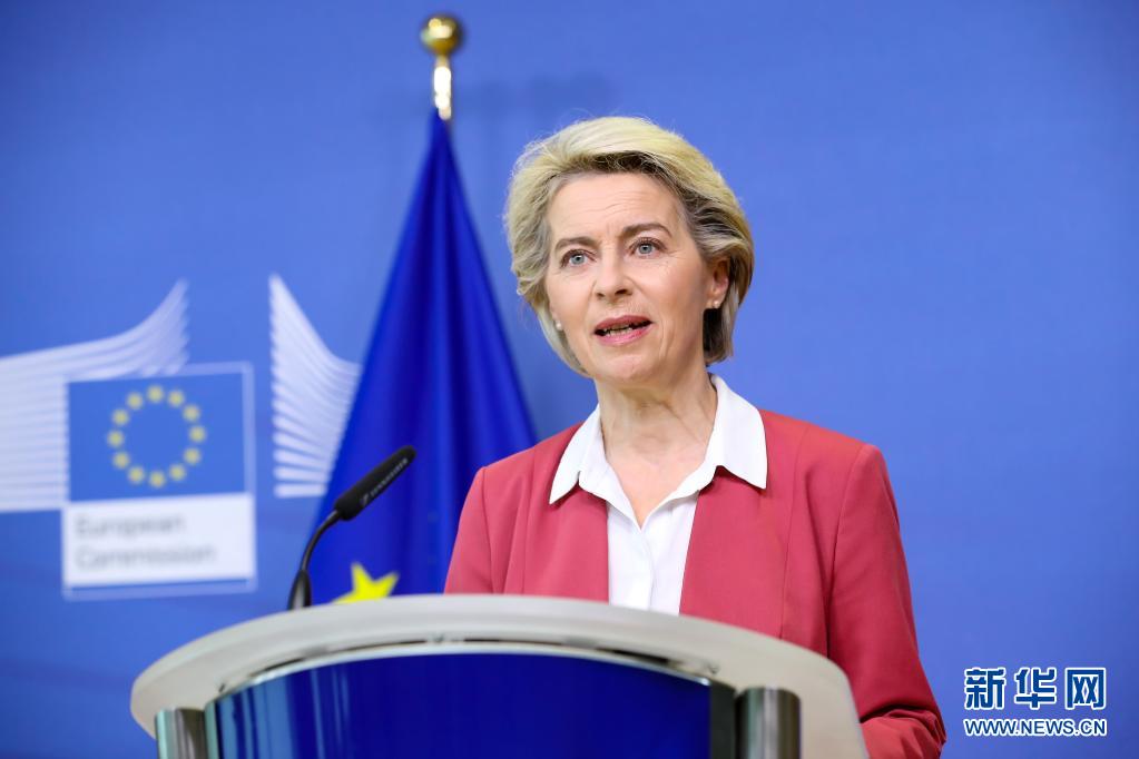 7月27日,在比利時(shí)布魯塞爾,歐盟委員會(huì)主席馮德萊恩發(fā)表視頻聲明。