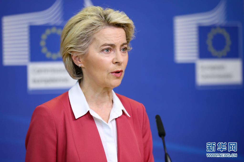 7月27日,在比利時布魯塞爾,歐盟委員會主席馮德萊恩發表視頻聲明。