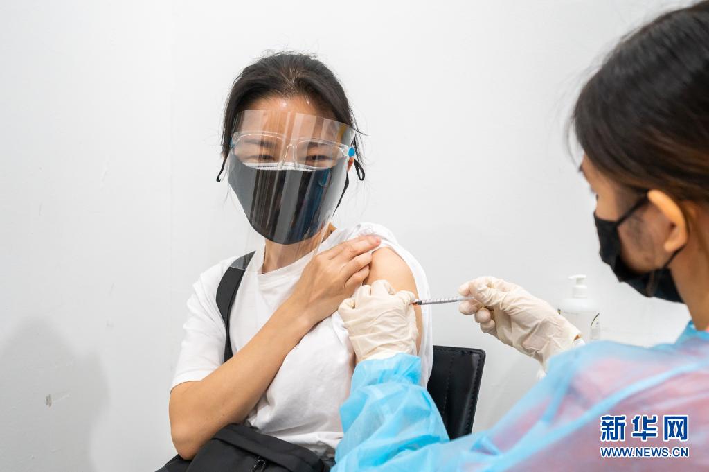 7月31日,一名中國公民在馬來西亞雪蘭莪州的一處新冠疫苗接種中心接種疫苗。 為海外中國公民接種新冠疫苗的“春苗行動”于7月中旬在馬來西亞正式實施,在馬中國公民已開始陸續接種科興疫苗。新華社記者 朱煒 攝