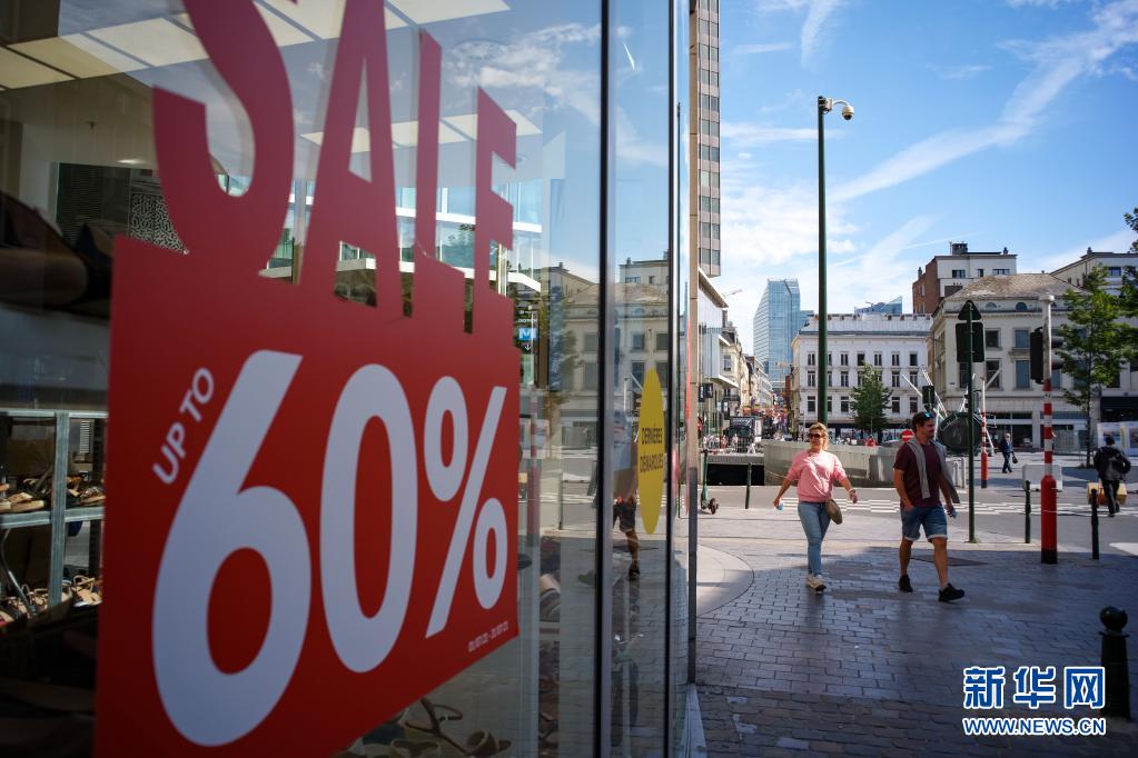 7月30日,人們走過比利時(shí)布魯塞爾一家正在進(jìn)行促銷活動(dòng)的商店。 歐盟統(tǒng)計(jì)局30日公布的初步統(tǒng)計(jì)數(shù)據(jù)顯示,經(jīng)季節(jié)調(diào)整后,歐元區(qū)今年第二季度國(guó)內(nèi)生產(chǎn)總值(GDP)環(huán)比增長(zhǎng)2%,同比增長(zhǎng)13.7%;歐盟GDP環(huán)比增長(zhǎng)1.9%,同比增長(zhǎng)13.2%。新華社記者 張鋮 攝