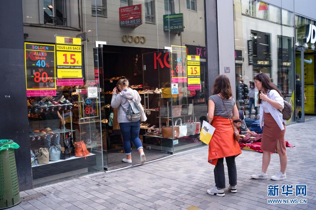 7月30日,人們進(jìn)入比利時(shí)布魯塞爾一家正在進(jìn)行促銷活動(dòng)的商店。 歐盟統(tǒng)計(jì)局30日公布的初步統(tǒng)計(jì)數(shù)據(jù)顯示,經(jīng)季節(jié)調(diào)整后,歐元區(qū)今年第二季度國(guó)內(nèi)生產(chǎn)總值(GDP)環(huán)比增長(zhǎng)2%,同比增長(zhǎng)13.7%;歐盟GDP環(huán)比增長(zhǎng)1.9%,同比增長(zhǎng)13.2%。新華社記者 張鋮 攝