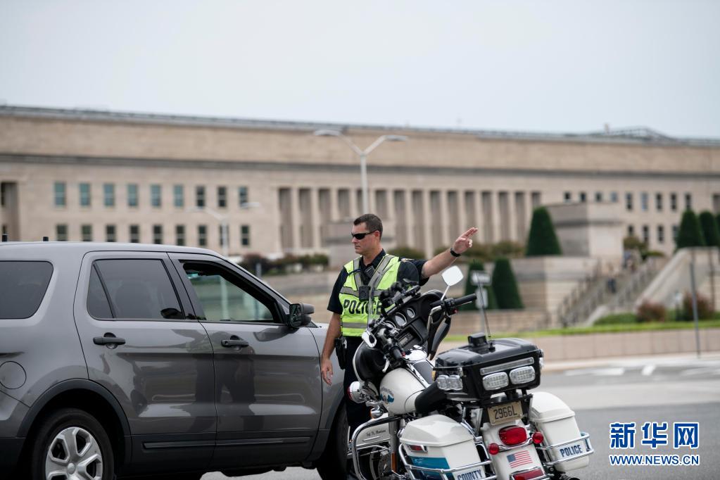 8月3日,調查人員在美國弗吉尼亞州阿靈頓的五角大樓附近工作。新華社記者 劉杰 攝
