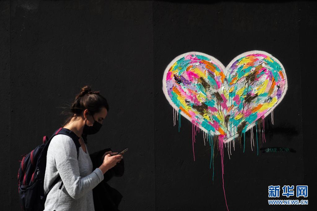 3月24日,行人從美國加利福尼亞州舊金山街頭一處心形涂鴉旁走過。