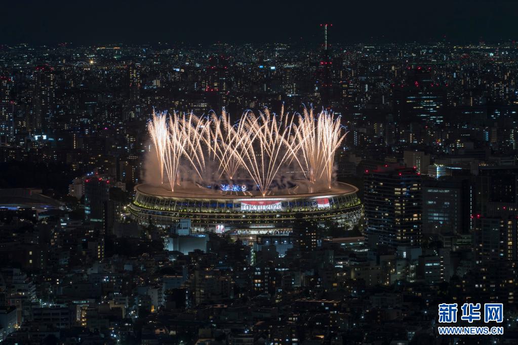 這是7月23日拍攝的東京奧運會開幕式的焰火表演。新華社記者 杜瀟逸 攝