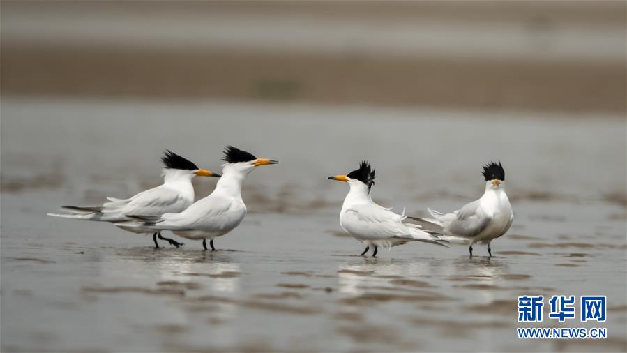 這是福建省閩江口沙洲上的“神話之鳥”——黑嘴端鳳頭燕鷗(4月7日攝)。新華社記者 梅永存 攝