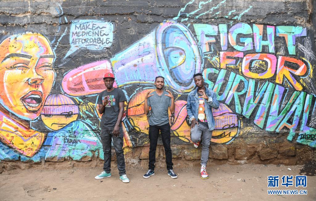 “生活很難,堅持住,別放棄,昂首向前。”這是“賽普勒斯”(Cyplez)樂隊的一句歌詞。樂隊由三名成員組成,成立至今已有八年。盡管在視頻分享平臺優兔上,樂隊的主頁訂閱量僅有215,但他們在肯尼亞首都內羅畢馬薩雷貧民窟擁有數以千計的粉絲。通過音樂,“賽普勒斯”正鼓舞著越來越多的貧民窟居民不言放棄、自強不息。 這是7月27日,“賽普勒斯”樂隊成員在肯尼亞首都內羅畢的馬薩雷貧民窟的一面涂鴉墻前擺出樂隊的代表性手勢。 新華社記者 李琰 攝