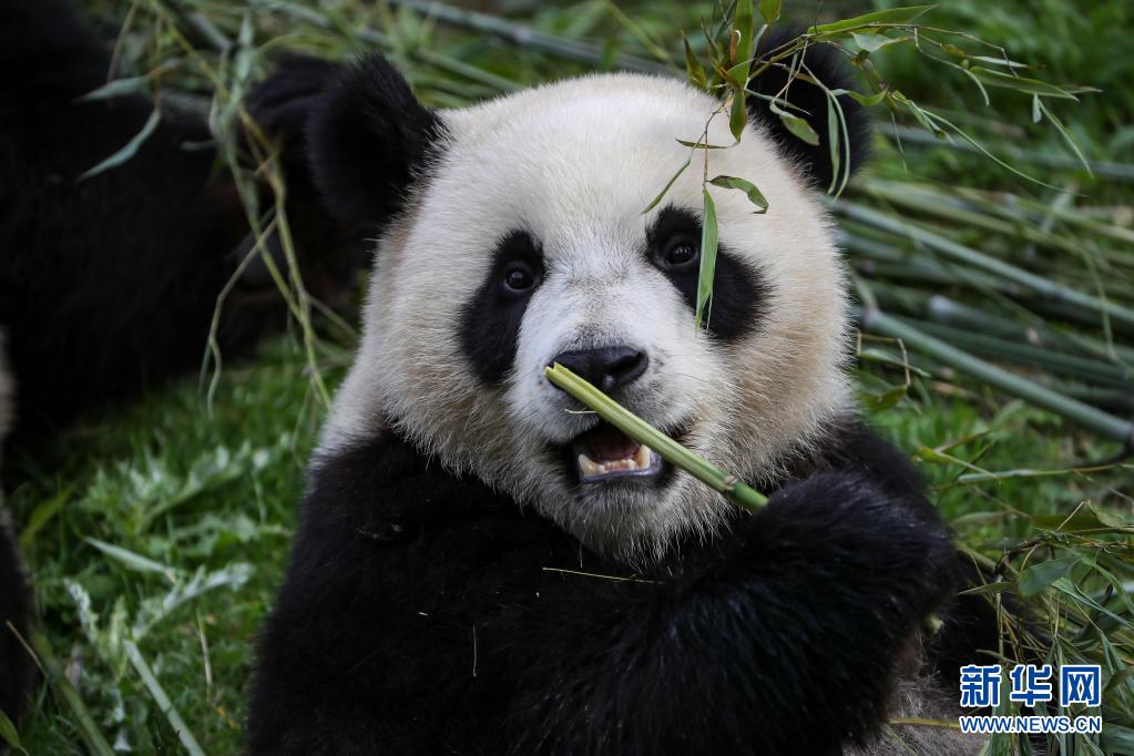 8月8日,大熊貓“寶妹”在比利時布呂熱萊特天堂動物園吃竹子。 當日,比利時布呂熱萊特天堂動物園為大熊貓雙胞胎“寶弟”“寶妹”慶祝兩歲生日。2014年2月23日,大熊貓“星徽”和“好好”作為中比友好使者來到比利時,2019年8月8日,“好好”誕下雙胞胎“寶弟”和“寶妹”。加上2016年6月1日“好好”在比利時產下的雄性幼仔“天寶”,目前共有5只大熊貓在比生活。 新華社記者 張鋮 攝