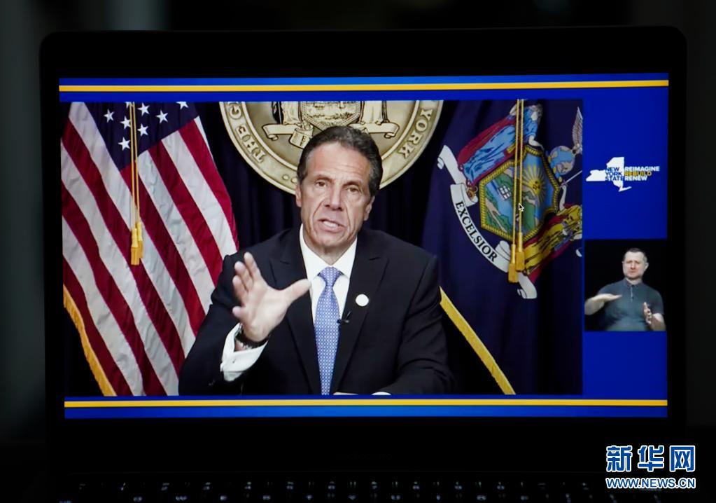這是8月10日在美國紐約拍攝的紐約州州長安德魯·科莫發表講話的視頻畫面。 由于受到多名女性指控性騷擾并面臨州議會彈劾,紐約州州長安德魯·科莫10日宣布辭職,并將于兩周后離任。新華社記者王迎攝