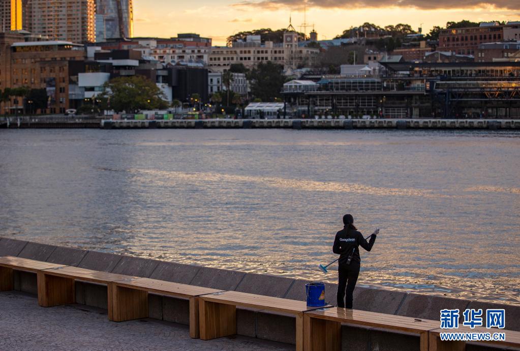8月10日,在澳大利亞悉尼,一位工作人員清潔歌劇院前廣場。
