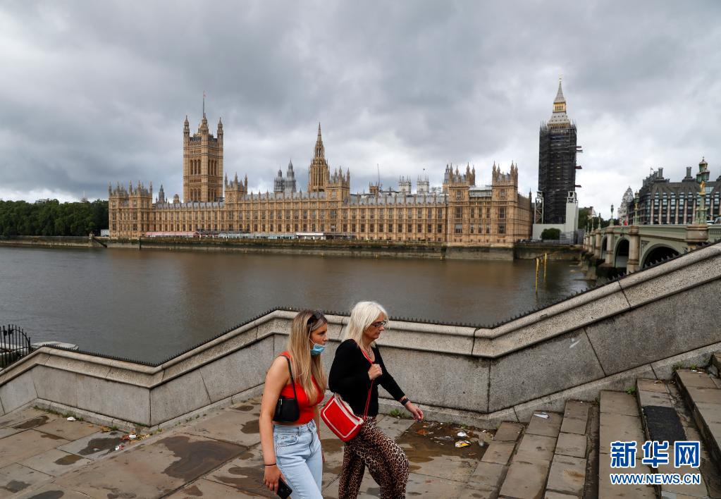 8月9日,人們從英國倫敦的議會大廈附近走過。