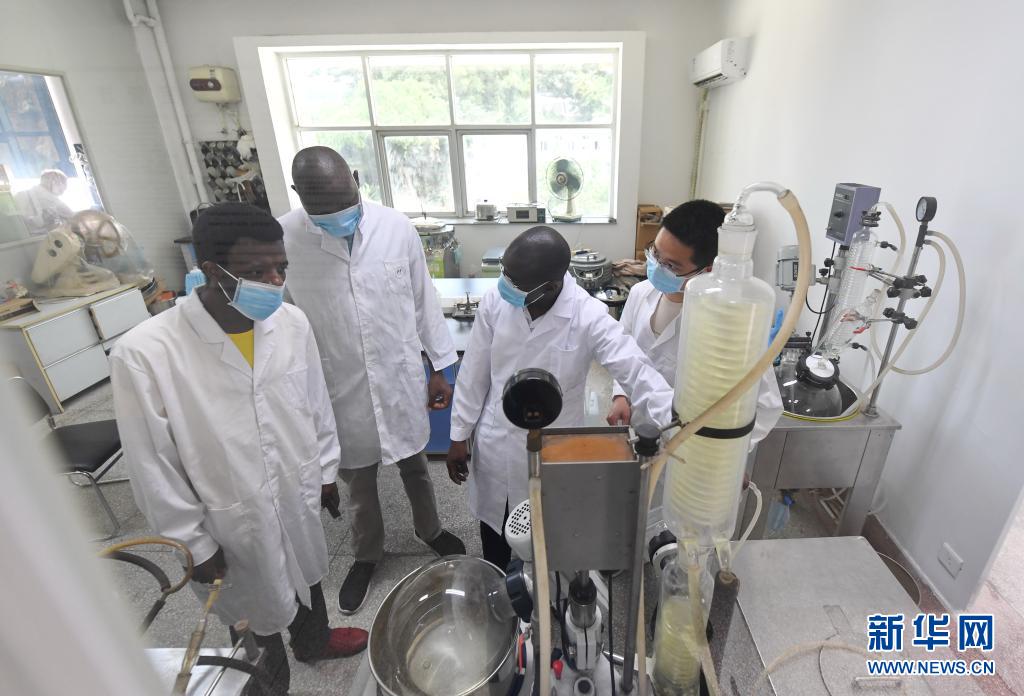 8月12日,幾名非洲留學生在實驗室內學習交流。