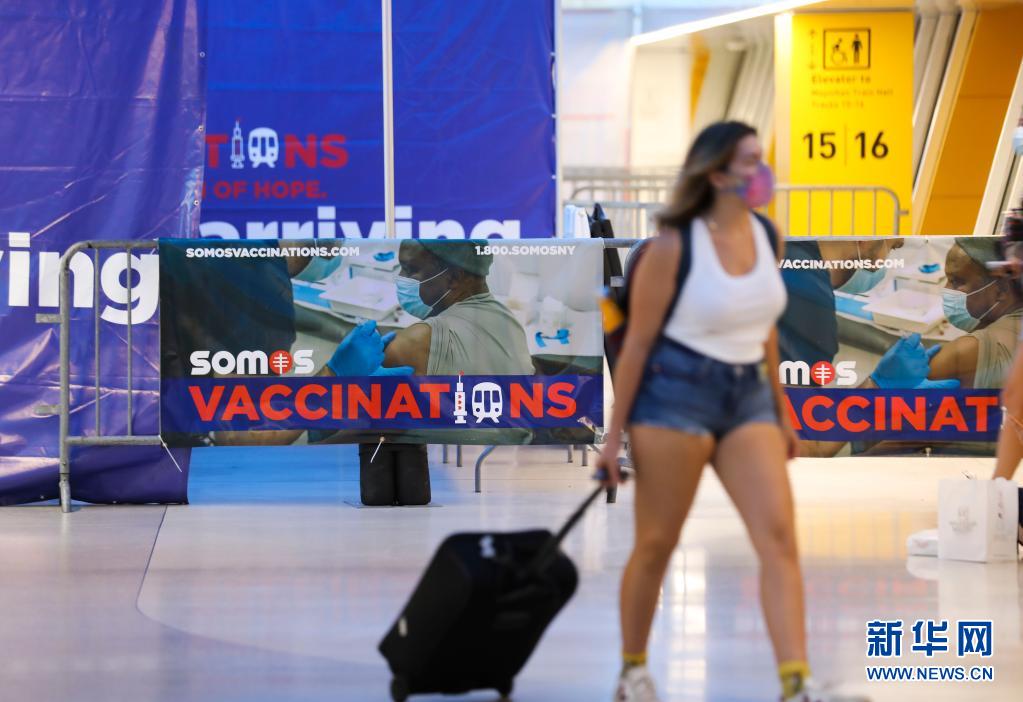 8月11日,乘客從美國紐約賓夕法尼亞車站新乘車大廳的疫苗接種廣告旁走過。 美國約翰斯·霍普金斯大學8月10日發布的數據顯示,截至美國東部時間10日18時21分(北京時間11日6時21分),美國累計新冠確診病例達36039748例,累計死亡病例達618044例。數據還顯示,目前美國累計確診病例數約占全球2億多確診病例的18%;美國累計死亡病例數約占全球430多萬死亡病例的14%。 新華社記者 王迎 攝