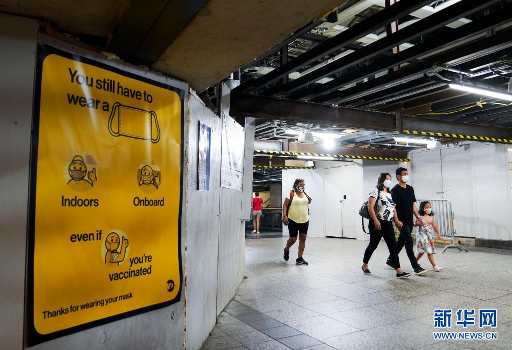 8月11日,人們經過美國紐約一處地鐵通道內的防疫提示牌。 美國約翰斯·霍普金斯大學8月10日發布的數據顯示,截至美國東部時間10日18時21分(北京時間11日6時21分),美國累計新冠確診病例達36039748例,累計死亡病例達618044例。數據還顯示,目前美國累計確診病例數約占全球2億多確診病例的18%;美國累計死亡病例數約占全球430多萬死亡病例的14%。 新華社記者 王迎 攝