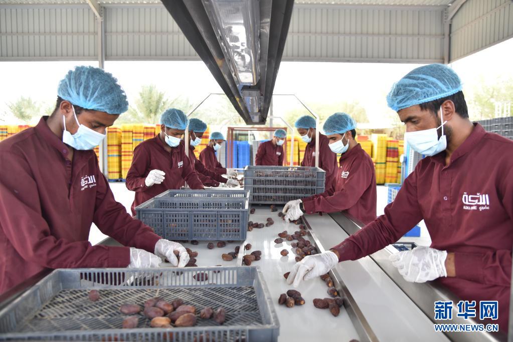8月12日,工人在沙特阿拉伯加特的一家農場內對采摘的椰棗進行初篩。 每年的7月底、8月初,沙特進入椰棗收獲季。椰棗營養豐富,易于攜帶及儲存,亦被稱為沙漠面包。 新華社記者 王海洲 攝