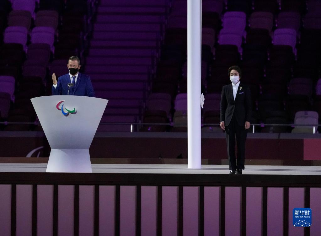 8月24日,第16屆夏季殘疾人奧林匹克運(yùn)動(dòng)會(huì)開幕式在日本東京舉行。 這是國(guó)際殘奧委會(huì)主席安德魯·帕森斯(左)在開幕式上講話。 新華社記者 胡虎虎 攝