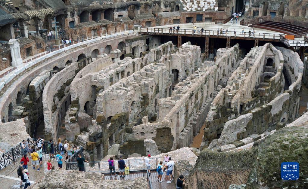 這是8月24日拍攝的意大利羅馬斗獸場的下層區(qū)域。 經(jīng)過一段時間的修復(fù)工作后,意大利羅馬斗獸場的下層區(qū)域于今年6月向公眾開放。斗獸場下層區(qū)域包含房間和通道等,曾是競技表演前角斗士和猛獸的容身之處。 新華社記者 金馬夢妮 攝