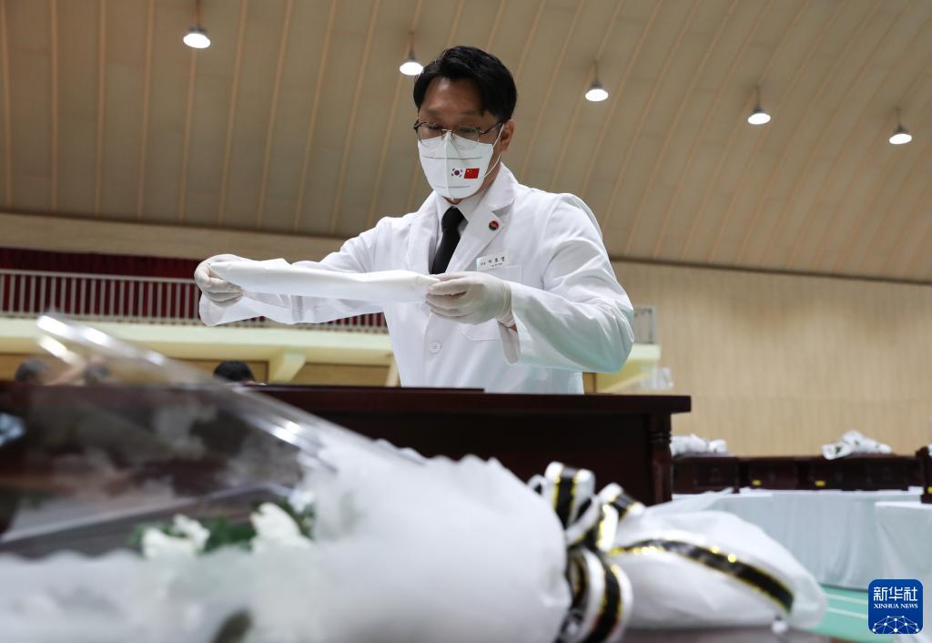 9月1日,在韓國仁川,韓方工作人員將志愿軍烈士遺骸入殮。新華社記者 王婧嬙 攝