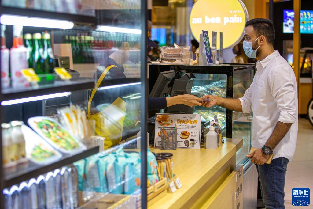 9月1日,顧客在泰國曼谷一家商場購買食品。新華社記者王騰攝