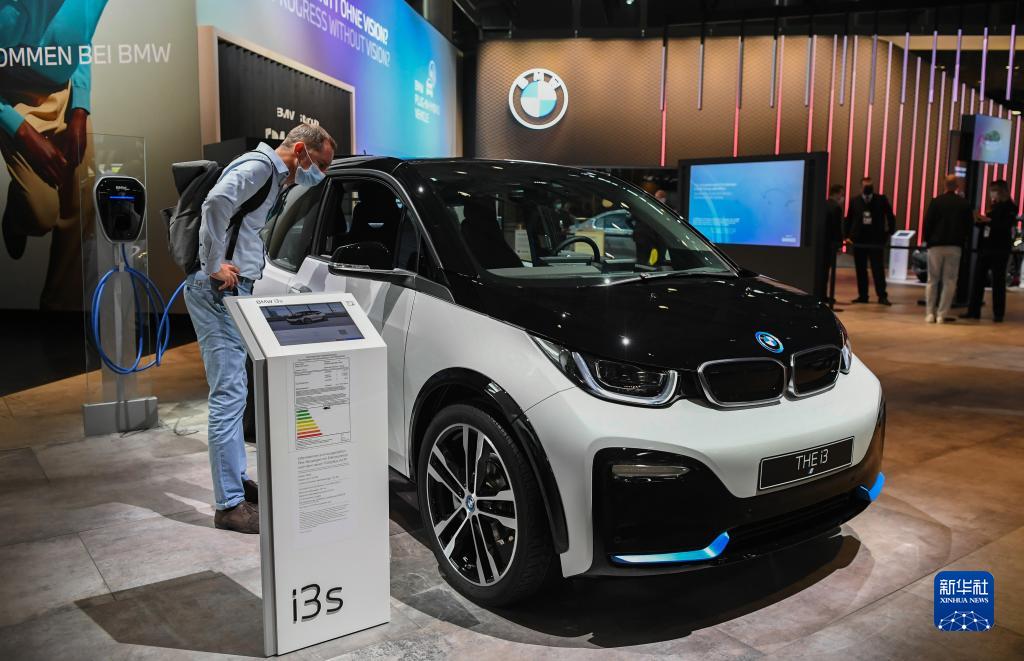 這是9月7日在德國慕尼黑國際車展上拍攝的寶馬i3s電動汽車。新華社記者 逯陽 攝