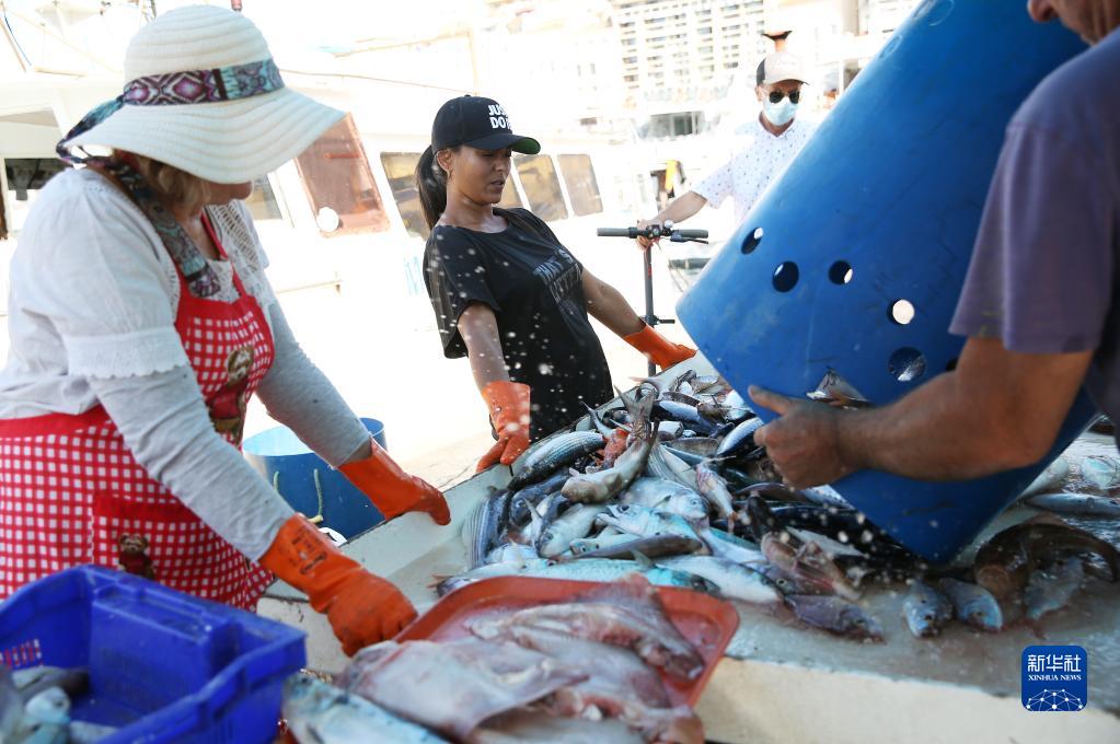 9月6日,漁夫在法國馬賽老港的魚市整理剛剛捕撈的漁獲物。