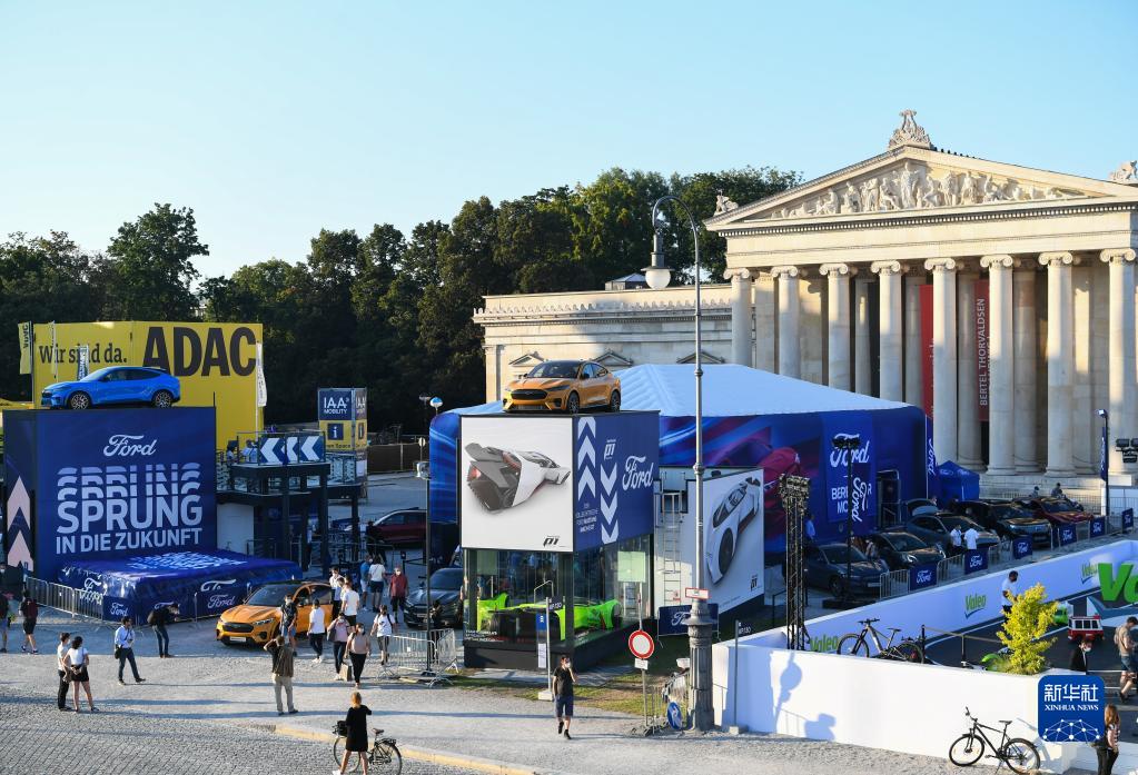 9月8日,人們在德國慕尼黑國際車展福特汽車戶外展區(qū)參觀。 德國慕尼黑國際車展于7日至12日在慕尼黑舉行。除主會場外,車展主辦方及各國際知名車企在慕尼黑老城區(qū)幾處地標廣場搭建露天展臺,吸引人們前來參觀。 新華社記者逯陽攝