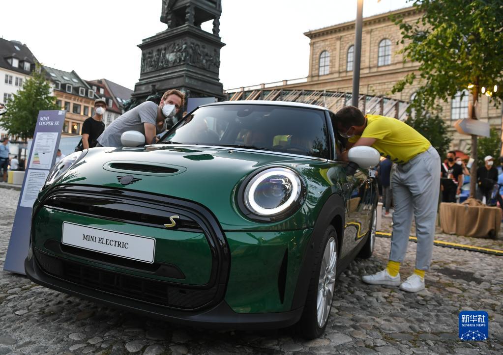這是9月8日在德國慕尼黑國際車展寶馬汽車戶外展區拍攝的一臺Mini電動車。