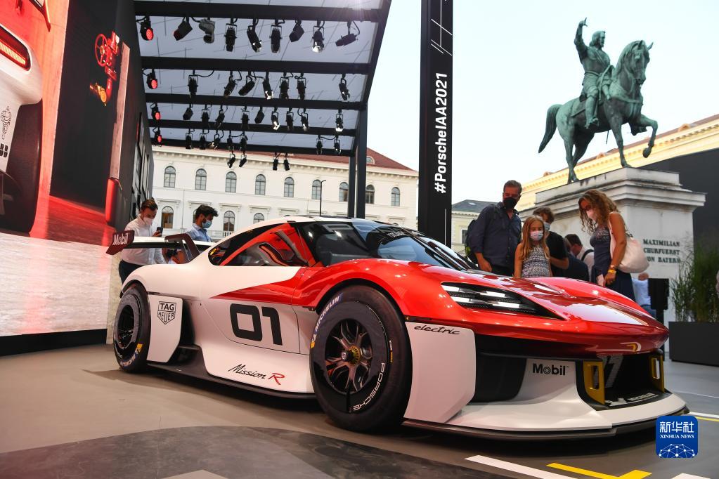 這是9月8日在德國慕尼黑國際車展保時(shí)捷汽車戶外展區(qū)拍攝的一臺(tái)保時(shí)捷電動(dòng)車。