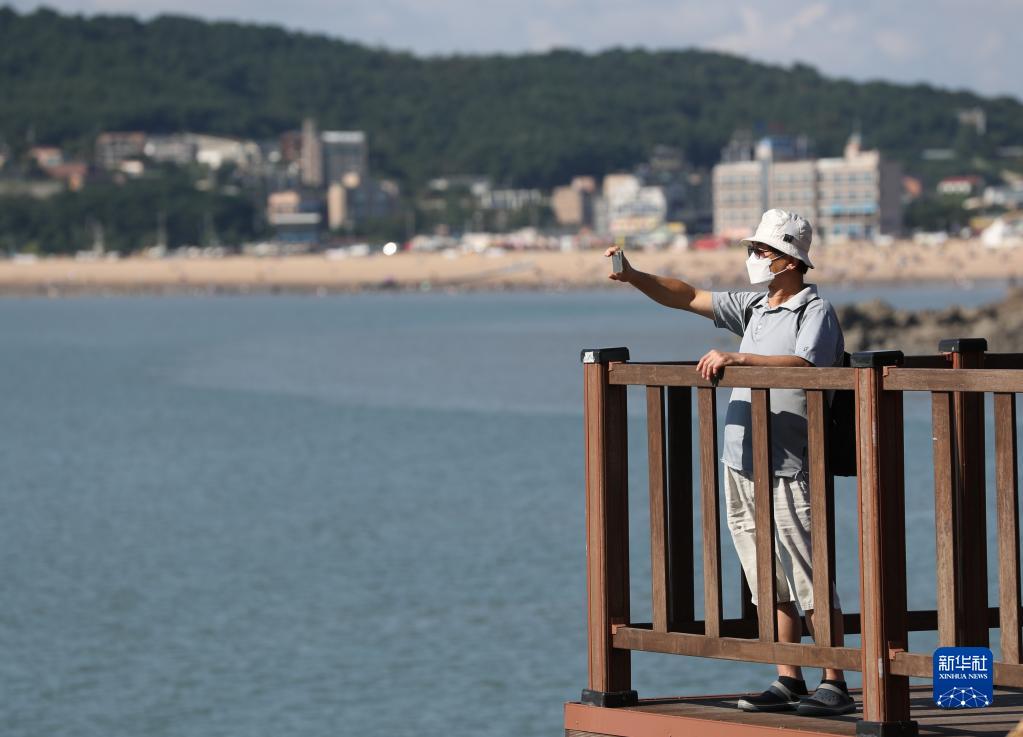 9月11日,一名男子在韓國仁川的乙旺里海水浴場附近拍照。