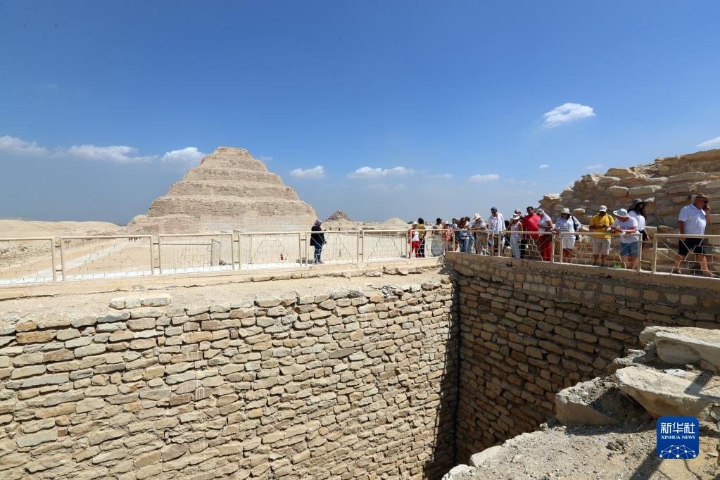 9月14日,游客在埃及首都開羅以南的塞加拉地區一座左塞爾時期古墓的地上建筑游覽。