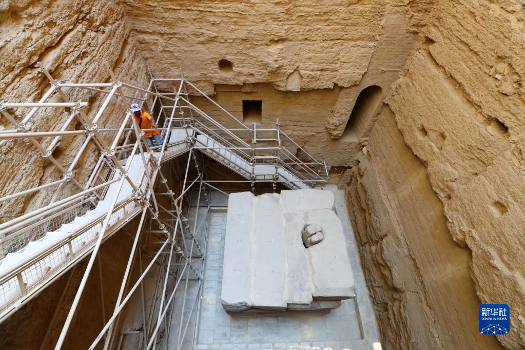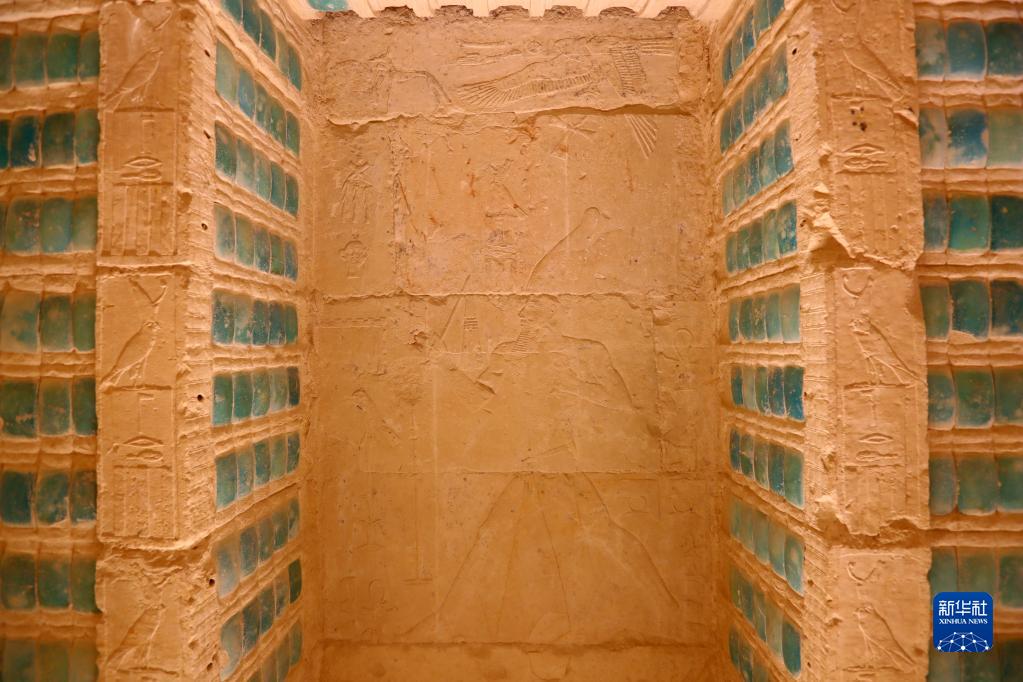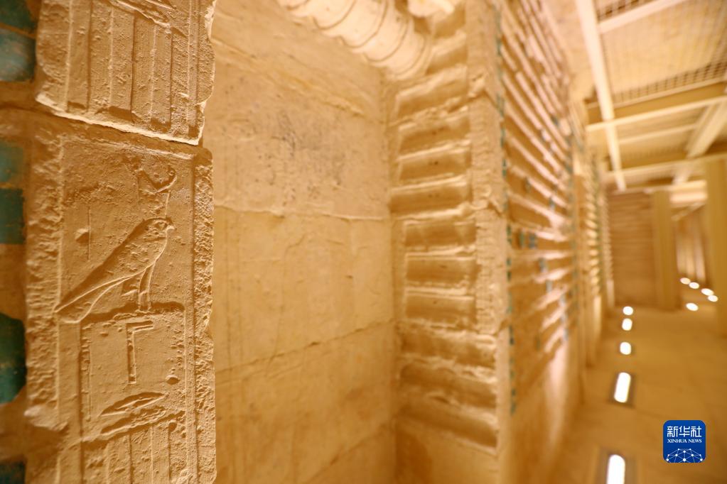 這是9月14日在埃及首都開羅以南的塞加拉地區一座左塞爾時期古墓內拍攝的畫面。 當日,位于埃及首都開羅以南約30公里的塞加拉地區,一座距今4000多年的古埃及第三王朝國王左塞爾時期的古墓經過近15年的修繕后正式向公眾開放。該墓位于左塞爾王階梯金字塔建筑群西南角,由地上建筑和地下墓室兩大部分構成。埃及于2006年啟動對該墓墓道、墓墻、墓室等建筑體的保護和修繕工作。 新華社記者 隋先凱 攝