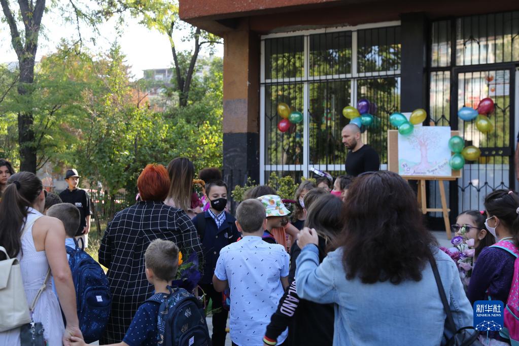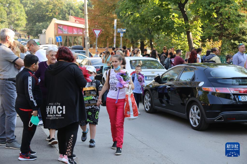 9月15日,家長們在保加利亞索非亞送孩子上學。 9月15日,保加利亞迎來新學年第一天。由于新冠疫情持續蔓延,保加利亞要求四年級以上的學生在室內佩戴口罩,并定期對教室進行通風和消毒。 新華社記者 林浩 攝