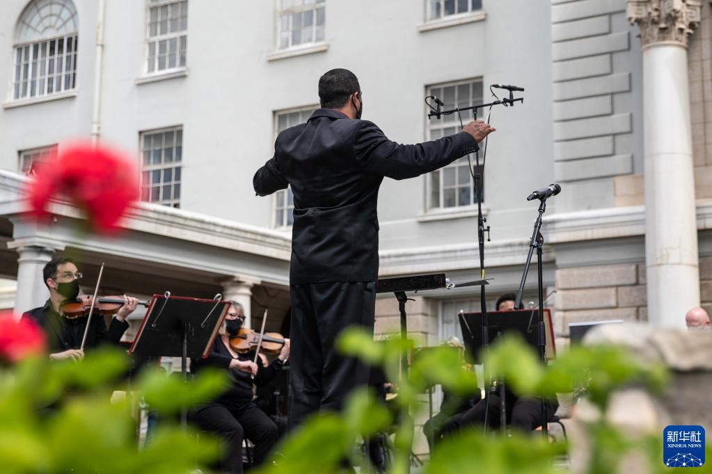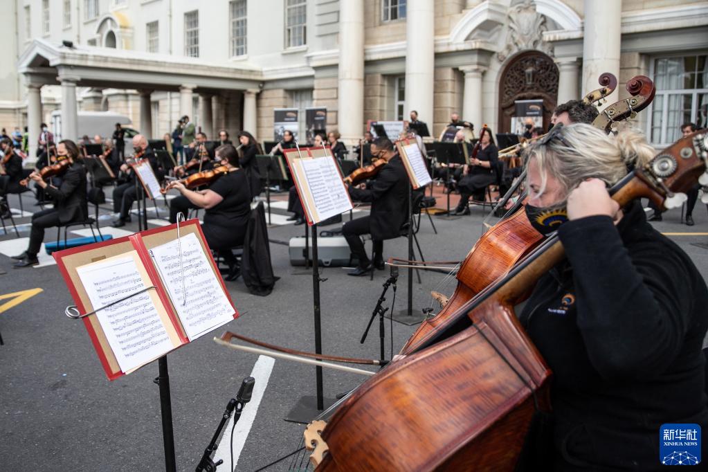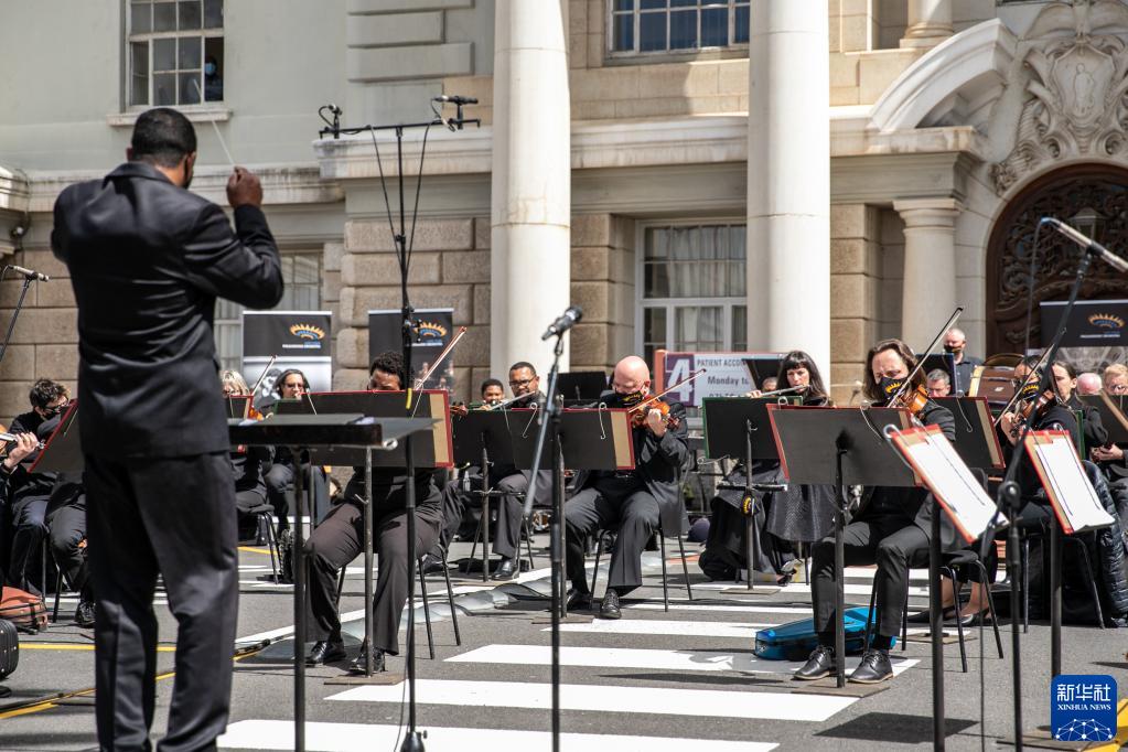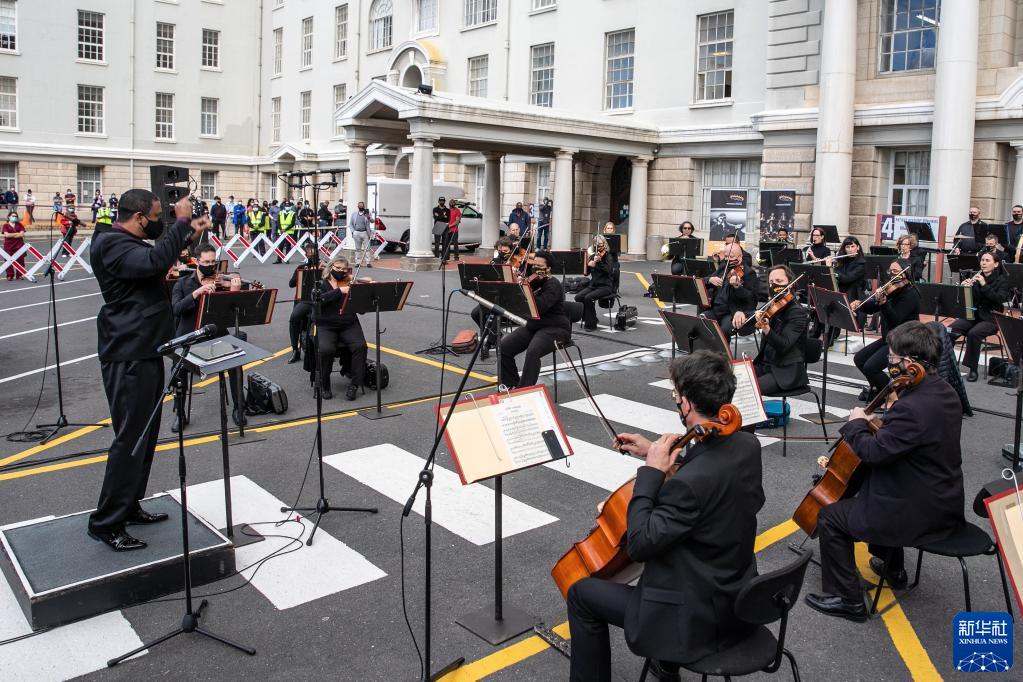 9月15日,在南非開普敦一家醫院外,開普敦愛樂樂團的音樂家在“感恩音樂會”上表演。 開普敦愛樂樂團15日午餐時間在戶外舉辦“感恩音樂會”,向全國所有一線醫護人員表達感激和贊賞。 新華社記者呂天然攝