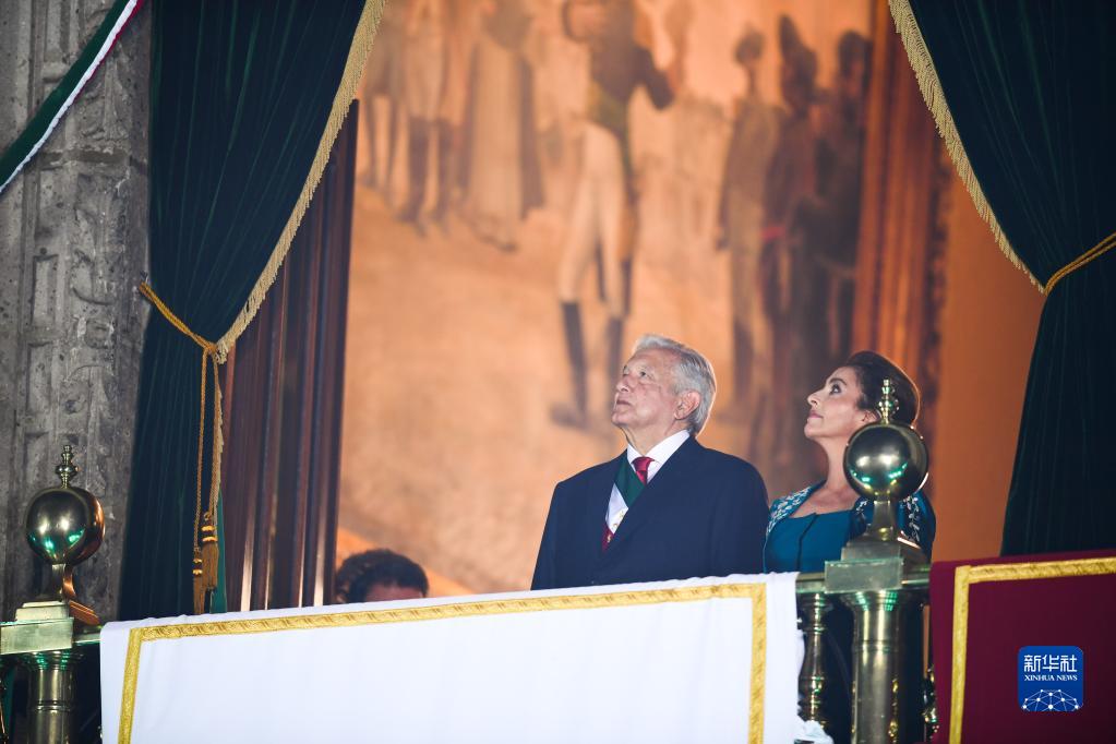 9月15日,墨西哥總統(tǒng)洛佩斯(左)和夫人在首都墨西哥城中心的國家宮出席獨立日慶祝活動時揮手致意。 當日,墨西哥舉行獨立日慶祝活動。 新華社記者 辛悅衛(wèi) 攝 |