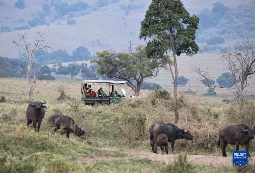 8月30日,游客在肯尼亞馬賽馬拉國(guó)家保護(hù)區(qū)觀看水牛。