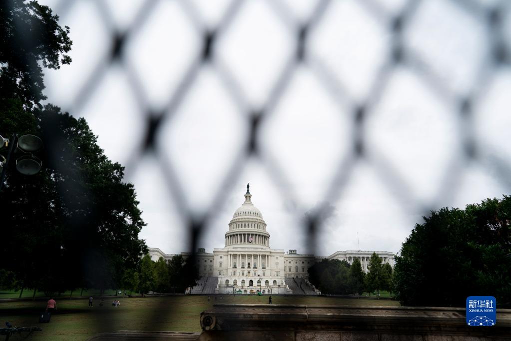 這是9月17日在美國首都華盛頓透過隔離圍欄拍攝的國會大廈。 近日,美國華盛頓的國會周邊設置起金屬隔離圍欄,用于防范突發事件。美國國土安全部預計9月18日將有約700人于華盛頓舉行集會,以支持今年1月6日國會騷亂后被捕的人員。 新華社記者 劉杰 攝