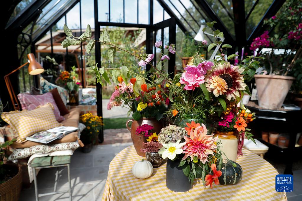 這是9月20日在英國(guó)倫敦的切爾西花展媒體日上拍攝的園藝裝飾。